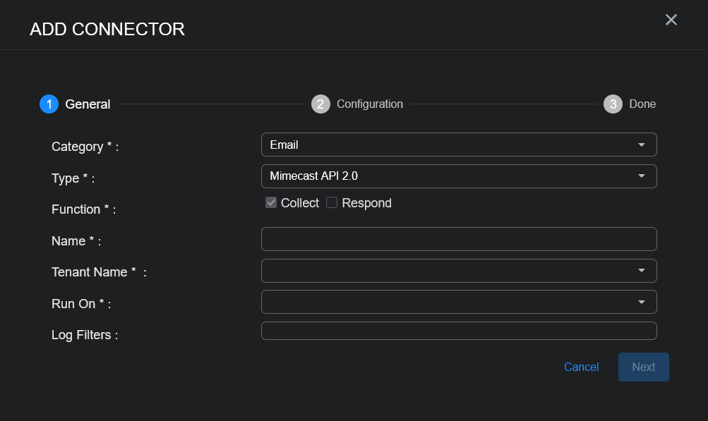 This connector allows Stellar Cyber to ingest Mimecast logs and add the records to the data lake. It integrates with Mimecast API 2.0 to query MTA logs.