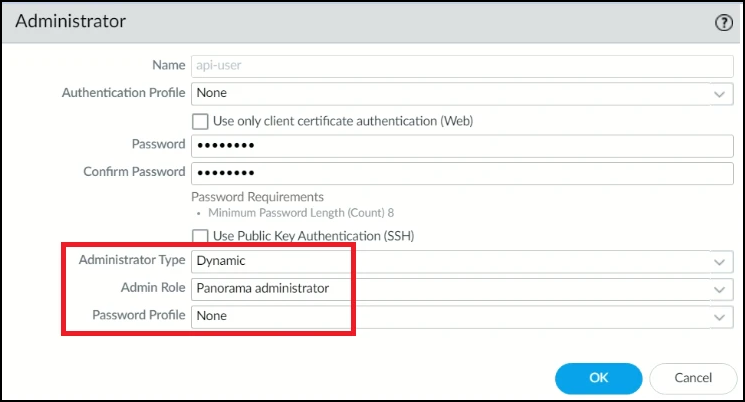 Choose Palo Alto Networks Panorama from the Type dropdown.