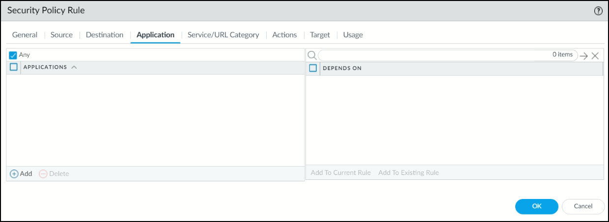 Under the Application tab, select Any.
