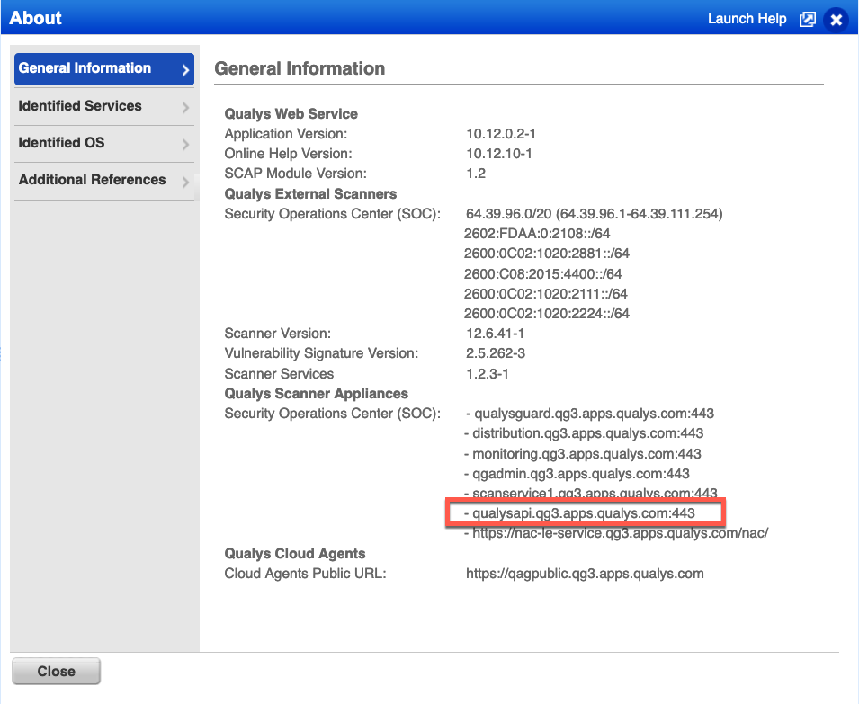 Qualys API URL, Username, and Password