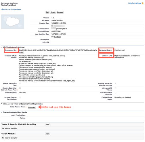 Click the Copy buttons to copy and save the Consumer Key and Consumer Secret. You need these for the Stellar Cyber connector configuration,