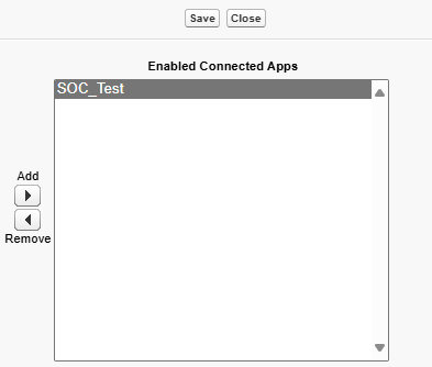 Under Connected App Access, add the connected app you created in Creating a Connected App.