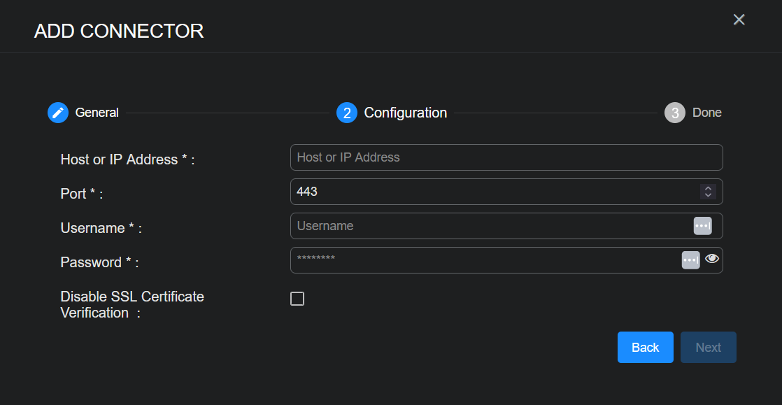 Stellar Cyber conducts a basic connectivity test for the connector and reports a success or failure result. A successful test indicates that you entered all of the connector information correctly.
