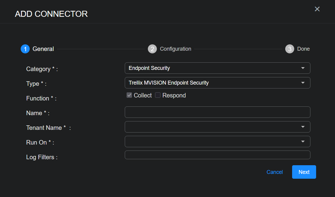 Choose Trellix MVISION Endpoint Security from the Type dropdown.