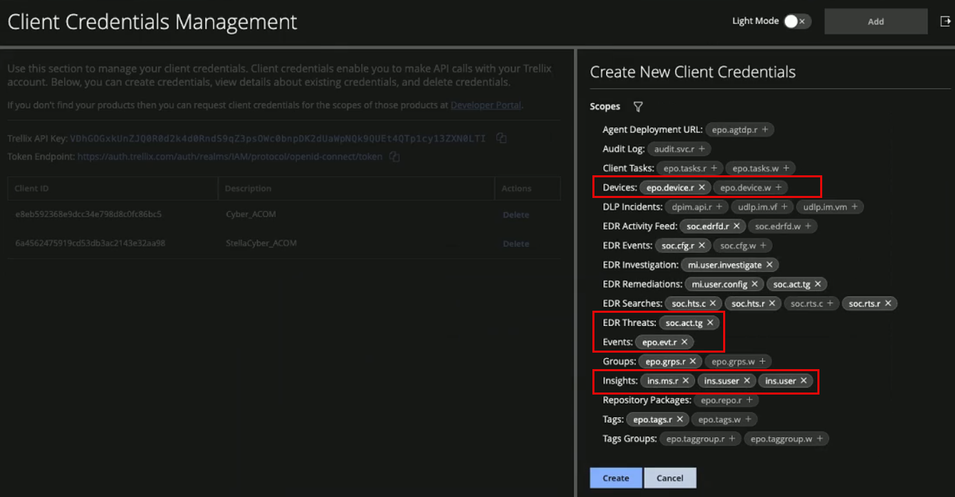 To generate credentials for the APIs needed for the Trellix MVISION connector: