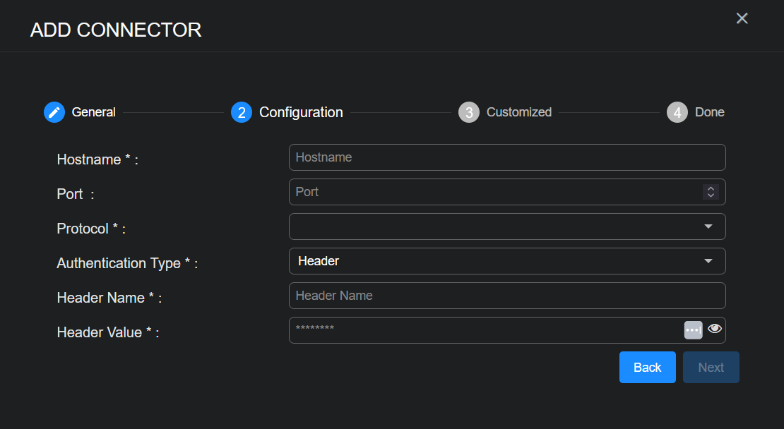 If you choose Header, in addition to Hostname, Port, and Protocol: