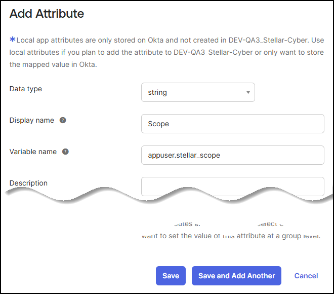 Screen capture of "Add Attributes" in the Okta UI.