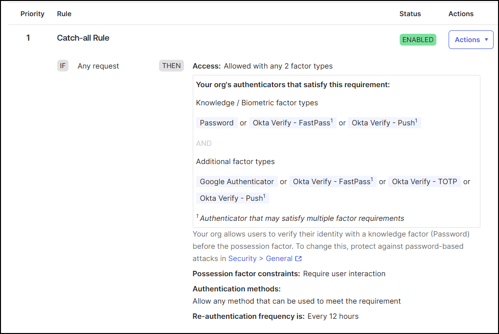 Screen capture showing the catch-all rule in the Okta UI