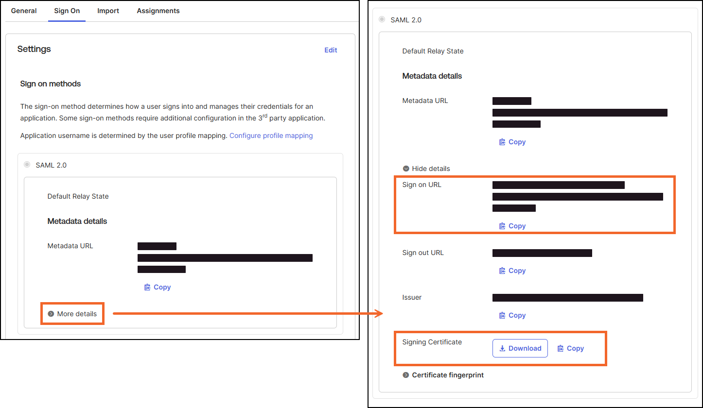 9. On the Sign On tab of the application you just created, expand More details.