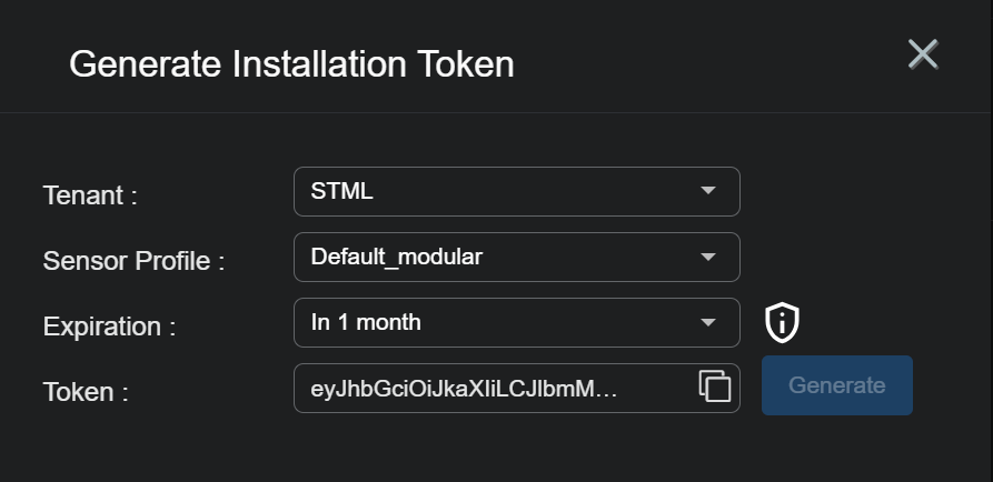 Select the Sensor Profile to be assigned to all sensors authorized with this token from the Sensor Profile dropdown. The dropdown lists all sensor profiles available in the System | Sensor Profiles page for the selected Tenant.