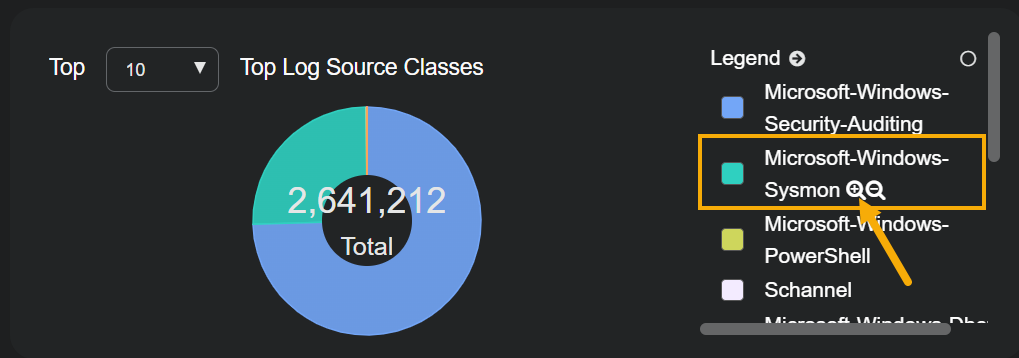 Click the button next to the entry for Microsoft-Windows-Sysmon in the Legend to use it as a filter. For example: