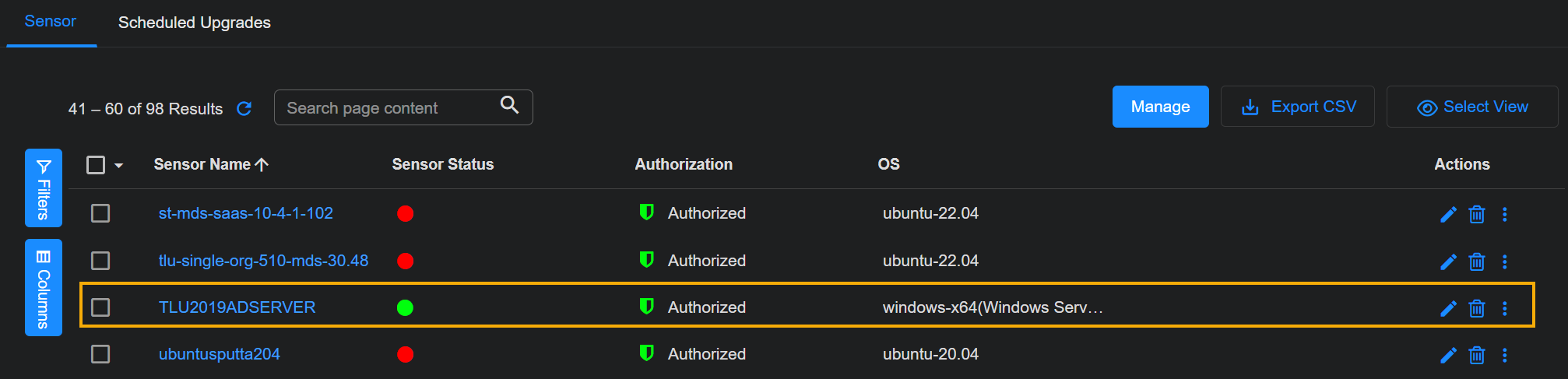 Connect to the DP managing the Windows Server Sensor and navigate to System | DATA SOURCE MANAGEMENT | Sensors | Sensors.