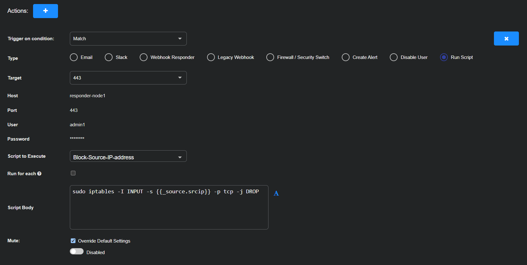 7. Specify whether you want to override the mute settings in the playbook and mute just this action.