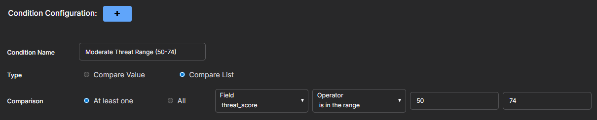 4 – Specify trigger conditions   Define your logic for triggering alerts in the Condition Configuration section.   See Add Conditions.